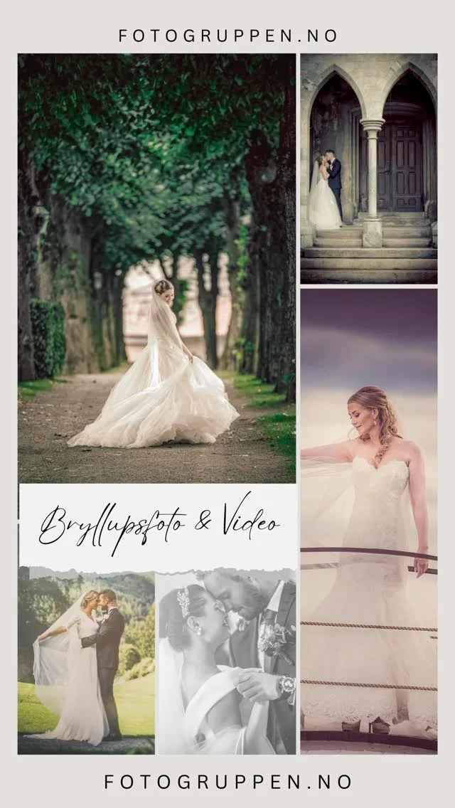 Vi i Fotogruppen.no tilbyr komplette foto- og videotjenester for bryllup med base i Bergen og Vestlandet. Vi spesialiserer oss på å dokumentere kjærlighetens største dag med ekte, levende og tidløse uttrykk. Du kan velge mellom rene fotopakker, profesjonelle bryllupsfilmer – eller en hybridløsning der du får begge deler, levert av samme fotograf.